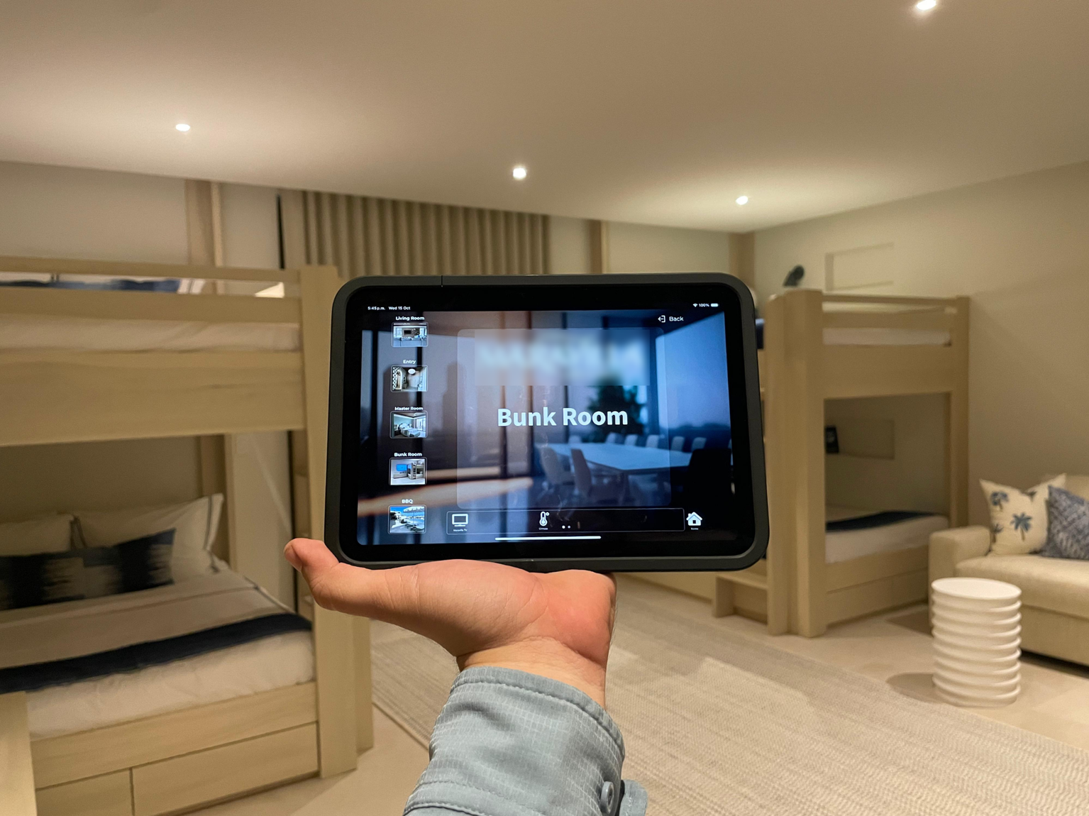 In this project, we unified multiple technologies, Lutron lighting and shading, Coolmaster HVAC control, Russound distributed audio, IPTV, and firepit ignition, into one cohesive ecosystem. The homeowner opted for RTI as the control platform, allowing full integration of all systems through an interface inspired by Savant’s timeless design. The result: effortless control, intuitive navigation, and a refined visual experience that blends naturally with the home’s architecture.